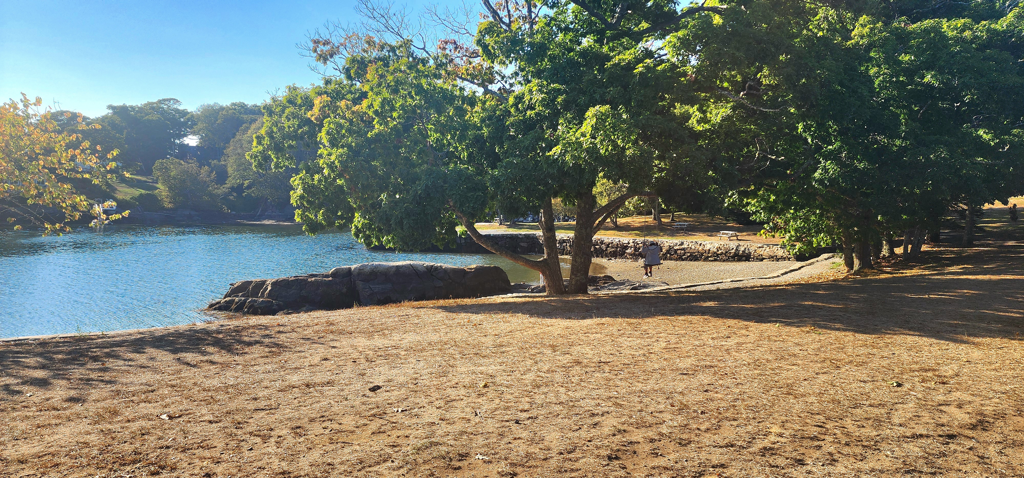 This cute park is a short distance from downtown, off Lobster Cove Road. Here you will find a waterfront shaded area with benches. The kids enjoyed skipping stones and swinging from the old fashioned tree swing. The water is calm and good for wading.