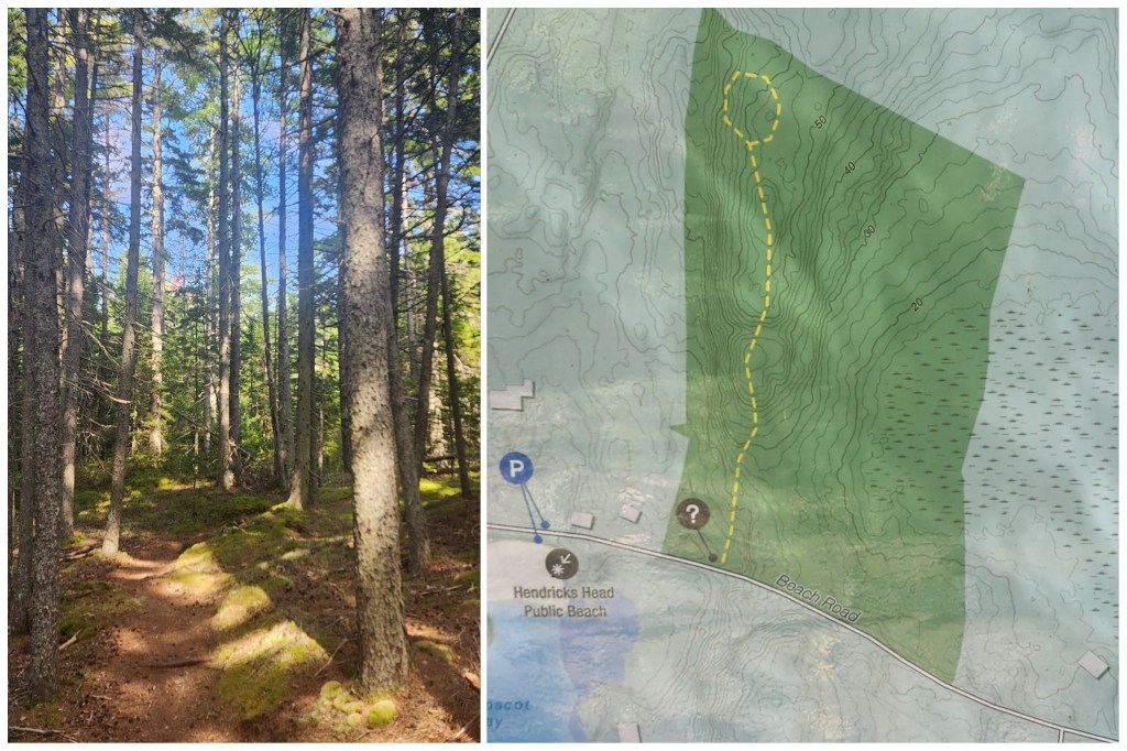 Get some steps in. Hendrick’s Head Trail is a very short easy wooded nature trail, managed by the Boothbay Region Land Trust. It is just a few steps away from the public beach. Park and walk back up the road you came in on. The trail meanders about 0.5 miles. It has a loop at the end, through a pine forest with lush and interesting moss and lichens on the ground. The trail has minimal elevation gain.