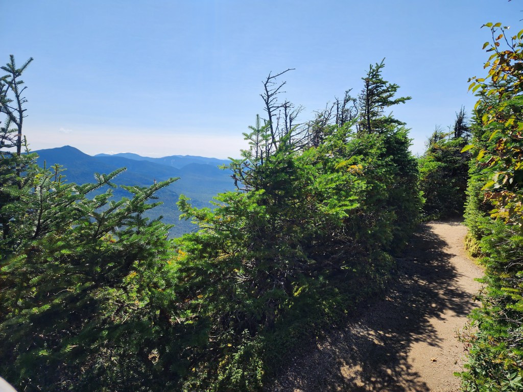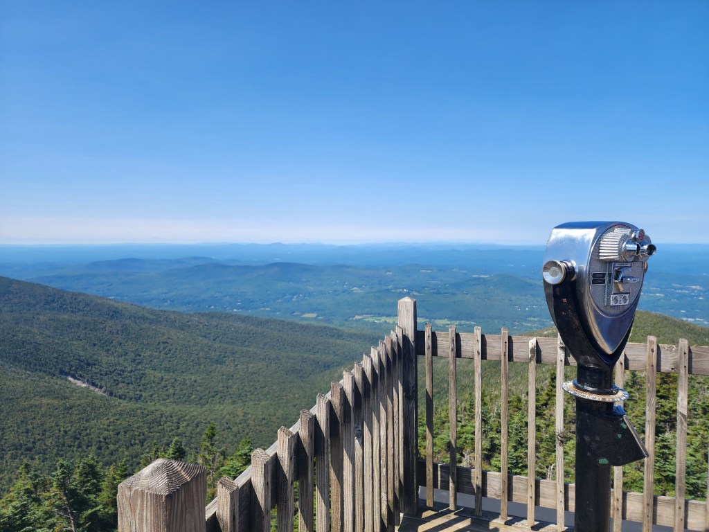 The trail is less than a 0.5 mile, and ends at a working fire tower that allows visitors to climb 4 flights higher. When we were there on a warm August day, there were gliders circling the mountains, and hawks soaring well below. Bring layers, it is windier up there!