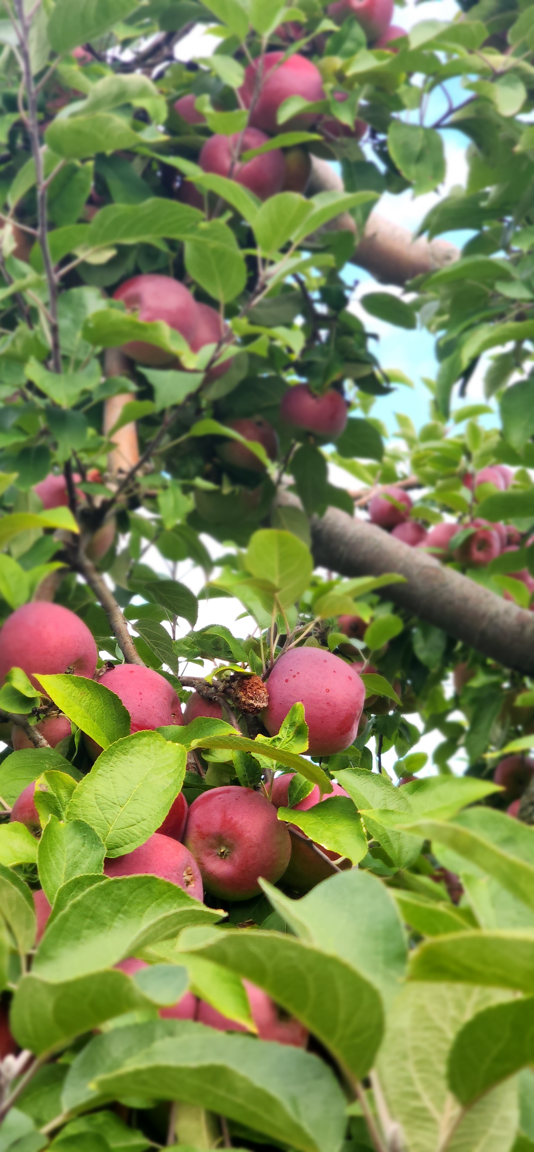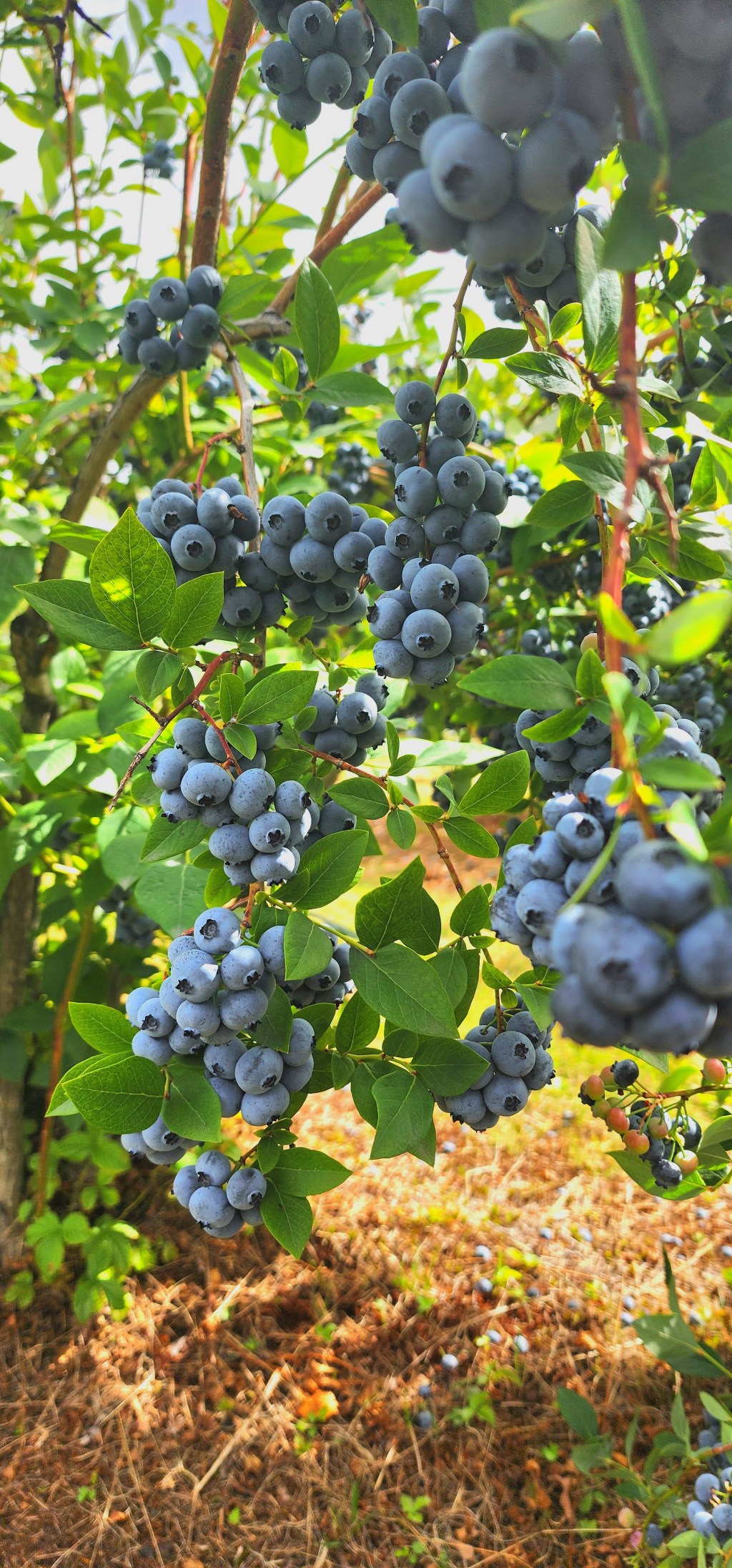 Warmed in the sun. The variety and volume of blueberries is unimaginable. They are easily picked and fall off the branches with minimal effort. I had no idea there were so many varieties! There are bushes as far as the eye can see. Even on busy weekend days, we did not feel crowded or rushed. And there are many low lying branches so even the youngest can participate. Apple trees and peach trees are also available for picking.