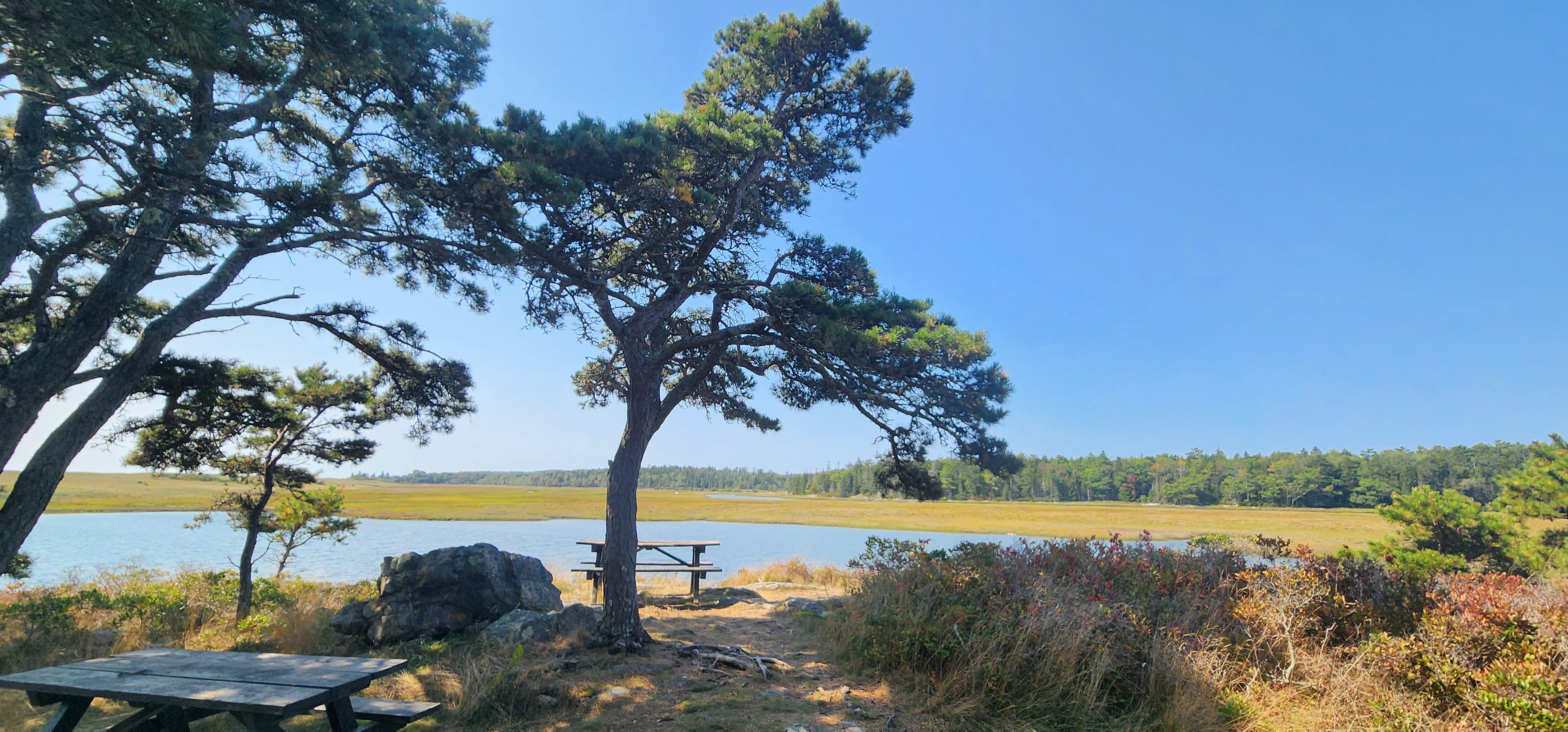 Reid State park is a charming day trip destination, located on the southern end of Georgetown Island. It offers both saltwater and freshwater swimming, miles of wooded and coastal trails, and some mild climbable outcrops. It is about a 1 hour drive from Portland, Maine along Route 1. Bring a picnic lunch and plan for a relaxing day. We arrived late morning on an off season Sunday, but suggest getting here early on peak summer weekends.